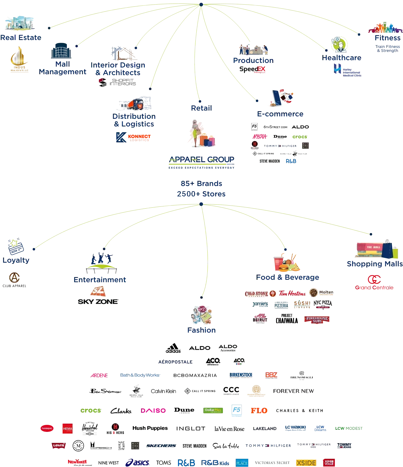 Leading the forefront of our diverse portfolio is Apparel Group, a globally recognized name in the retail industry. This flagship enterprise encompasses a network of more than 2500 stores worldwide, carrying over 85 distinct brands. Included under the Apparel Group’s umbrella are esteemed fashion, footwear, and lifestyle labels such as Tommy Hilfiger, Calvin Klein, Skechers, LC Waikiki, Charles & Keith, Levi’s, Birkenstock, TOMS, Forest Essentials, and more.